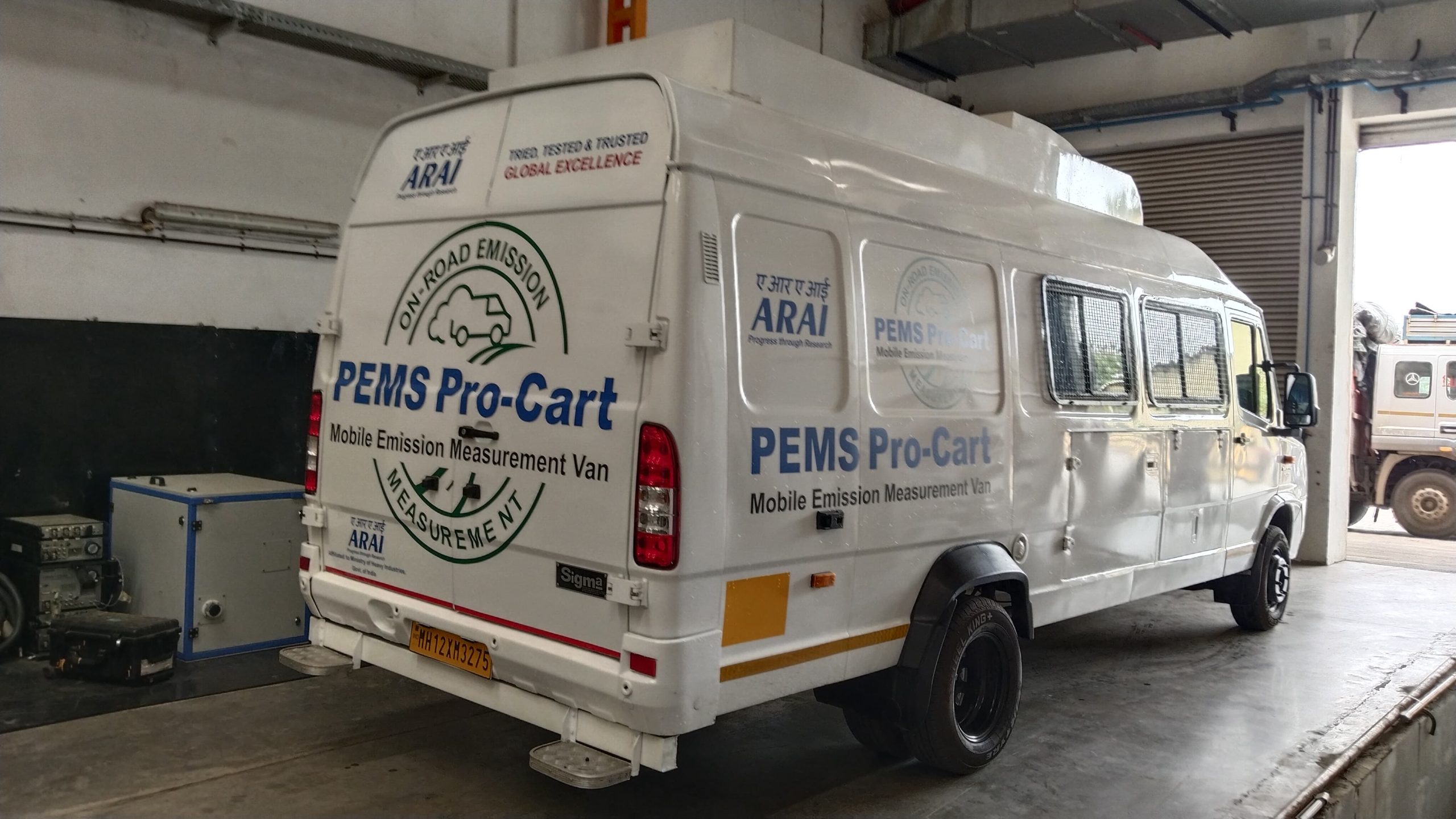 • In this temperature controlled test cell at ARAI Kothrud, Exhaust gas Emission Measurement system for CO, HC, NOX, CO2, Fuel consumption and PM using PEMS