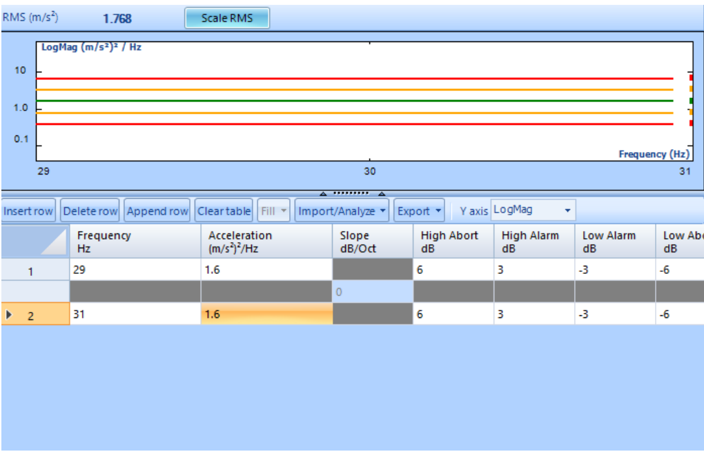 Physical quantity Profile RMS Profile expected values Shaker limits Expected / Shaker limits